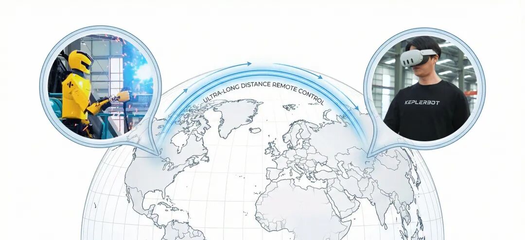 开普勒自研沉浸式全身遥操系统,是开普勒融合动作捕捉、低时延通信、力反馈等多技术,实现人类对机器人远程、沉浸、精准的 1:1 全身控制技术。它不仅是动作的简单复刻,更是 “操作执行 + 数据积累 + 自主进化” 的闭环系统 —— 当操作员通过遥操设备做出动作,30 公斤级双臂负载的 K2 大黄蜂能稳稳在高空中同步响应;当焊接器械遇到阻力,力反馈系统实时传递压力感;当焊缝出现火花飞溅,VR 头显同步呈现第一视角画面。