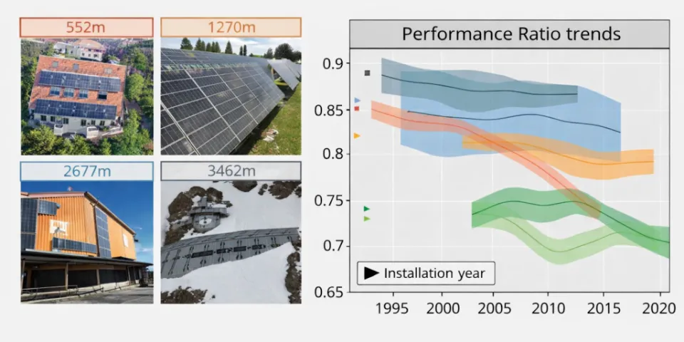 由瑞士南方应用科学与艺术大学 Ebrar Özkalay 领衔的研究团队,对 1987 年至 1993 年间安装的六套光伏系统进行了长期追踪。这些系统持续运行至今,为研究提供了数十年的性能监测数据。研究人员还对选定组件进行了实验室测试,以分析功率衰减情况及内部物理损耗状况。