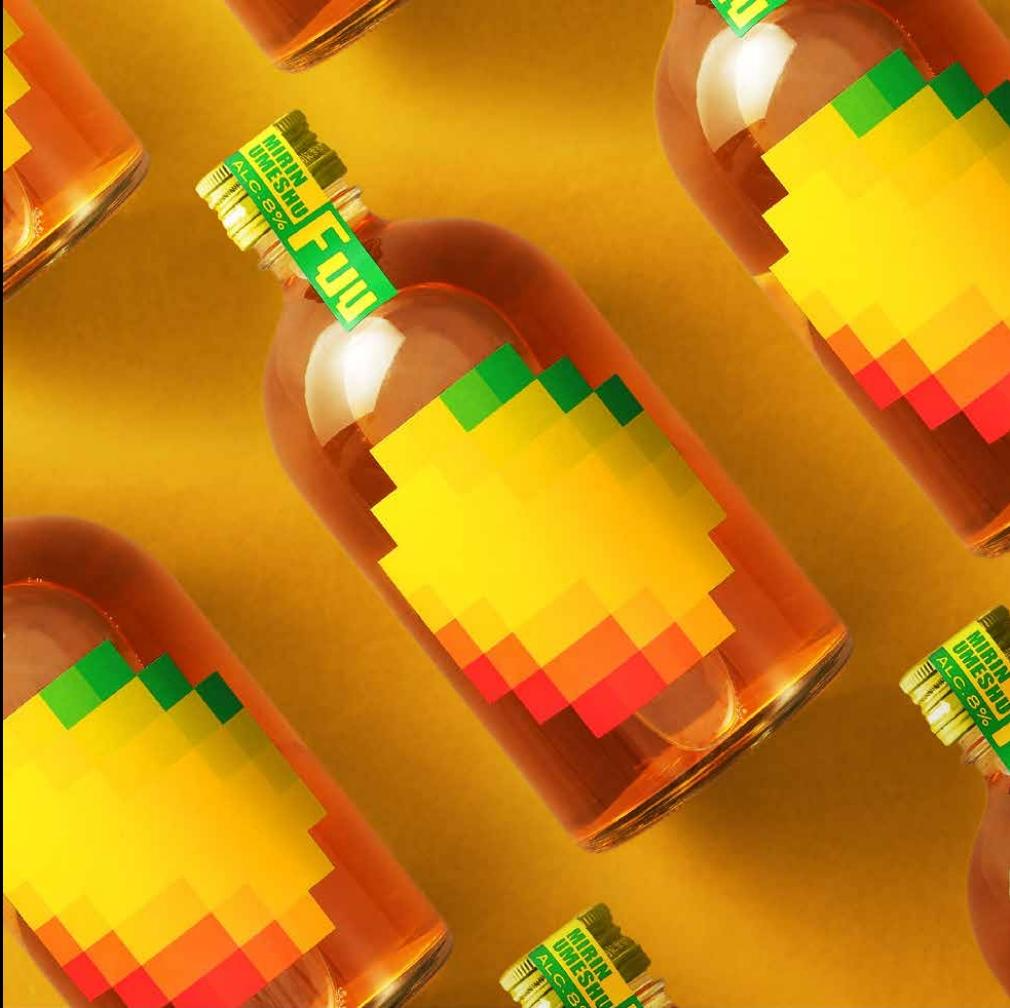 Dentsu Creative Pictures Inc. 使用像素化的梅子图案,将传统与俏皮感融合,视觉上唤起这款改良版梅酒 umeshu 轻盈、愉悦的微醺体验。其名称 Fuu,取自日语中“舒缓叹息”的拟声词,精准捕捉了其温润的口感。