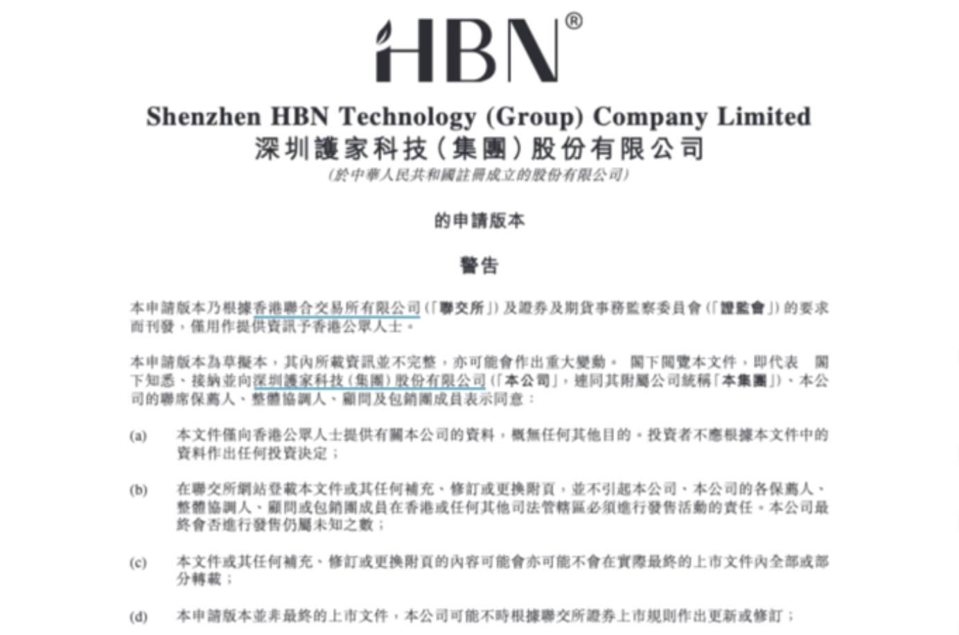 2026 年 1 月 26 日,网红护肤品牌 HBN 的母公司深圳护家科技(集团)股份有限公司正式向港交所递交主板上市申请。这家凭借「早 C 晚 A」护肤理念迅速崛起的国货品牌,正式开启资本市场之旅。