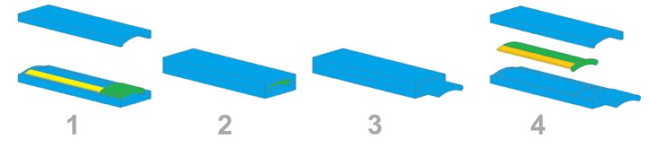 这一工艺通过优化热管理系统与自动化控制,实现了材料填充、固化与冷却的精准调控。模具设计充分考虑了热塑性复合材料的凝固特性,确保叶片成型后无需复杂机加工与抛光,仅需简单去毛刺即可满足气动表面精度要求。凭借双模腔设计,该生产线每年可产出 10,000 件产品,且具备进一步提升产能的潜力。
