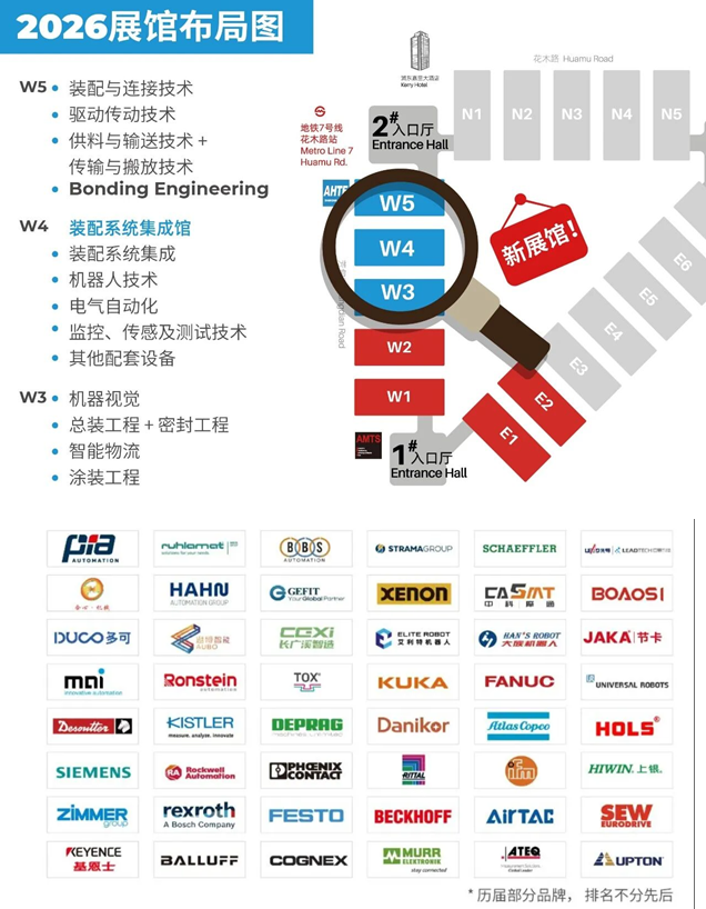 AHTE 2026展馆焕然一新,将首次在上海新国际博览中心W3,W4,W5馆举办,您将可以直接从2号入口大厅快速入场,体验多行业智能装配与自动化生产的非凡魅力。