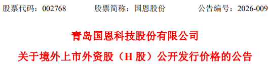 根据国恩股份最新公告,本次H股发行最终定价确定为每股36.00港元,该价格不含1%经纪佣金、0.0027%香港证券及期货事务监察委员会交易征费、0.00565%香港联交所交易费及0.00015%香港会计及财务汇报局交易征费。