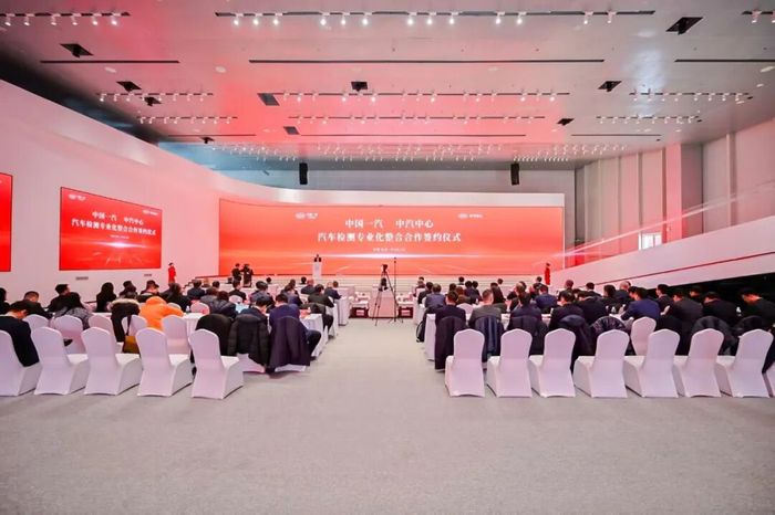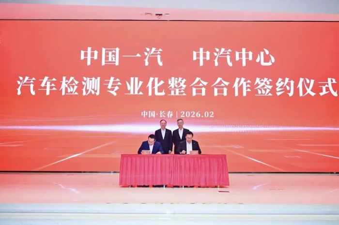 2026年2月4日,中汽中心与中国一汽汽车检测专业化整合合作签约仪式在长春举行。中汽中心党委书记、董事长安铁成,中国一汽党委书记、董事长邱现东,长春市委常委、常务副市长吴波出席并致辞。中国工商银行执委会成员、董事会秘书兼高级业务总监田枫林,中国汽车工程学会副秘书长赵立金,长春市汽开区党工委书记李国辉出席仪式。中汽中心党委委员、副总经理周华,中国一汽红旗品牌运营委员会副总裁兼研发总院院长蒋文虎代表双方签署有关协议。中汽中心副总经理张嘉禾主持签约仪式。