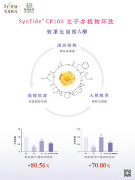 由多个氨基酸首尾相连的环八肽,无游离 N 端和 C 端,结构稳定性高。可促进 I 型、III 型胶原蛋白合成,改善胶原组织结构。体外测试显示 0.3% 浓度下 Collagen I、III 基因表达分别上调 80.56%、70%;人体测试显示使用含 1% 该成分产品 28 天后眼角皱纹面积下降 23.56%,眼下皱纹面积下降 21.83%。