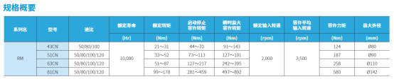 RVmini®提供丰富的规格选择,速比涵盖50-120,额定转矩范围21Nm-459Nm,额定寿命长达10000小时起,可无缝对应从小型到大型的各类机器人选型需求。无论是轻负载高精度场景,还是重负载强冲击工况,都能找到精准匹配的型号,实现传动性能的最优适配。