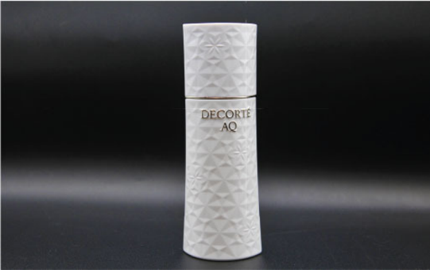 Yoshino 已在日本高丝品牌的 Cosme Decorte 瓶子上成功实施并商业化这项技术。热烫印标志均匀地应用在压花标志区域的顶部,而瓶子的其余部分展示了 PET 压花的精致可能性。