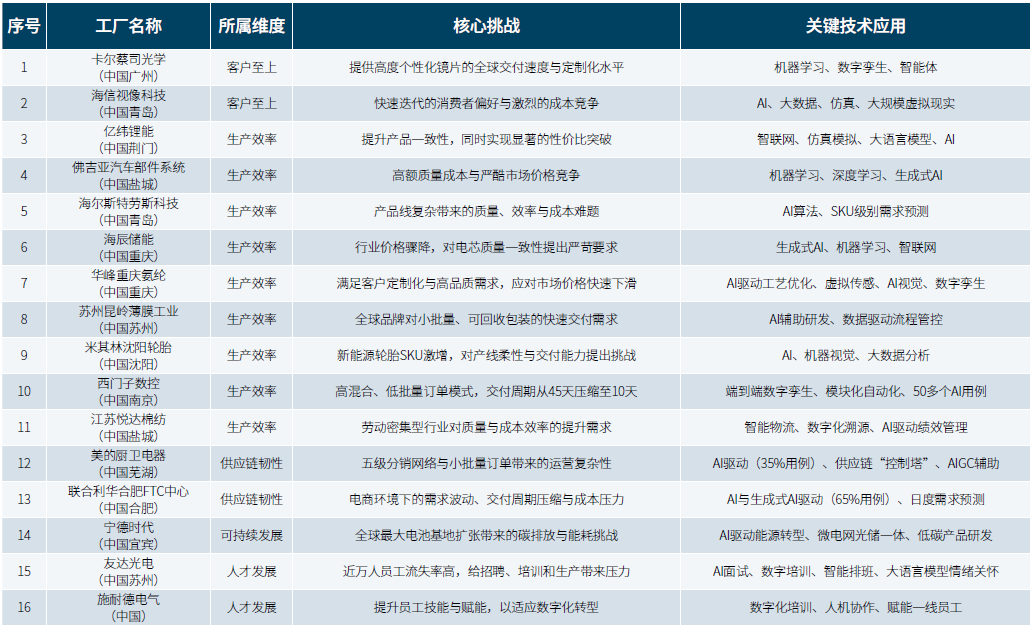 可见,AI与多技术融合成为制造业突破成本、效率、韧性瓶颈的核心路径,为全球产业转型提供了可复制的“灯塔方案”。《智能制造纵横》特此梳理中国新晋的16家灯塔工厂,具体如下: