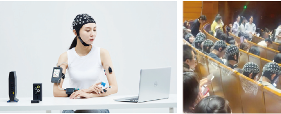 图4:佩戴便携式脑电设备的志愿者在演出现场 © 互联网