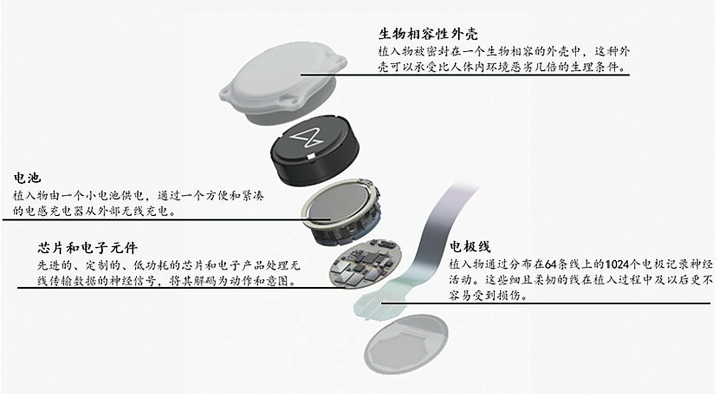 图3:Neuralink N1植入物主要构成部分 © 互联网