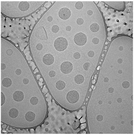 配方采用 1000 bar 高压微射流均质工艺,经三次循环处理制备。冷冻透射电镜(Cryo-TEM)确认了囊泡的球形结构完整性。