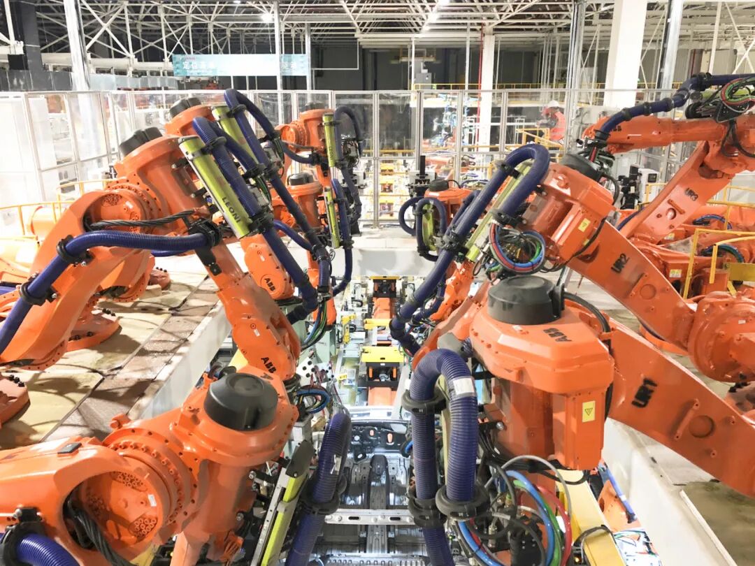 广汽传祺宜昌工厂,是广汽斥巨资打造的“未来智慧工厂”,致力于以更高标准打造世界级造车体系。ABB为广汽传祺宜昌工厂焊装车间提供了一系列解决方案,包括ABB GateFramer柔性总拼系统,ABB FlexTrack柔性导轨,以及零部件装配与涂胶工作站。其中,ABB GateFramer柔性总拼系统的创新设计,共配备18台机器人,实现了46秒的生产节拍,开创了ABB全球柔性白车身总拼线节拍最快记录。