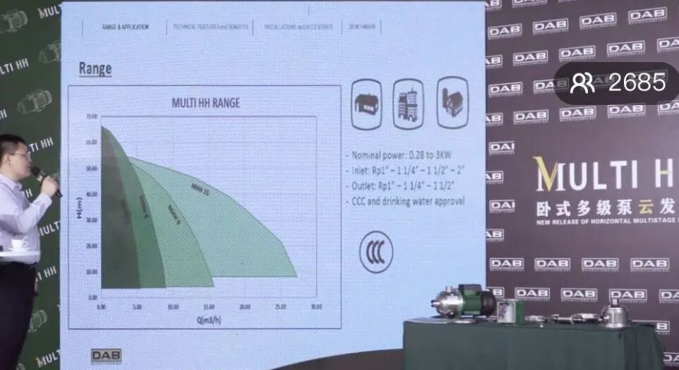 最后,产品工程师张启裕就Multi HH的性能、应用环境、安装等具体信息为中国客户进行了更接地气的分享,Multi HH是对卧式多级泵KHH系列的更迭换代。并一一解答了大家关心的货期、质保等问题。