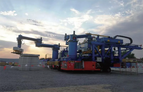为解决承轨层大型叠合梁板施工时,现场浇筑方式周期长、效率低下、材料浪费的问题,中铁科工集团等单位联合研发了“赤沙号”站房装配式施工机器人。这台机器人长80米,自重120吨,有效跨度达到69米,拥有72个传感器、50个摄像头,具备良好的环境感知能力。采用双桁架主梁结构,拥有8条能够独立动作的腿,每条腿都能独立伸缩,实现横向、纵向走行,可平稳通过各种复杂地形。以往需要数十名工人的施工过程,现仅需1名司机和1名指挥员即可。