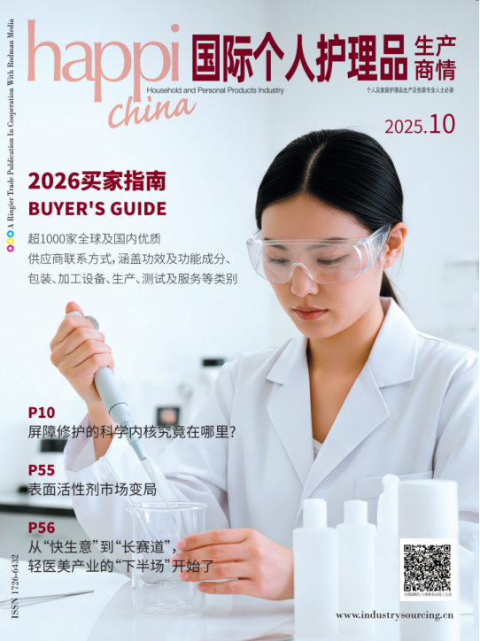 十月金秋,正值产业链伙伴筹备来年合作的关键时刻。当下的采购与供应链进入精细化博弈期,合规趋严、成本与交期摇摆,决策要更快也要更准。本期《happi China》重磅推出「2026买家指南」,翻开本期买家指南,或许您会找到推动企业发展的关键一环。此外,数据显示,2025年上半年中国化妆品出口总额达35.9亿美元,同比增长10.5%。这一增长态势为国内供应链企业带来了前所未有的机遇窗口……